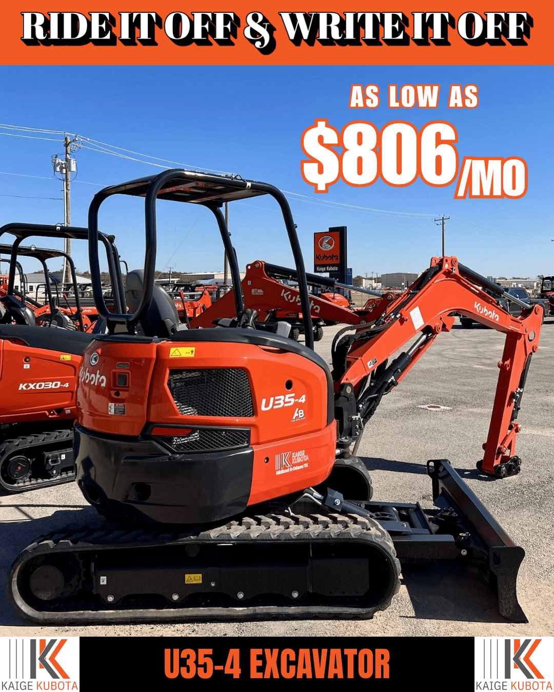 Secure your Kubota U35-4 today. Ride it off the lot, write it off your taxes, and set your business up for success in the year ahead.